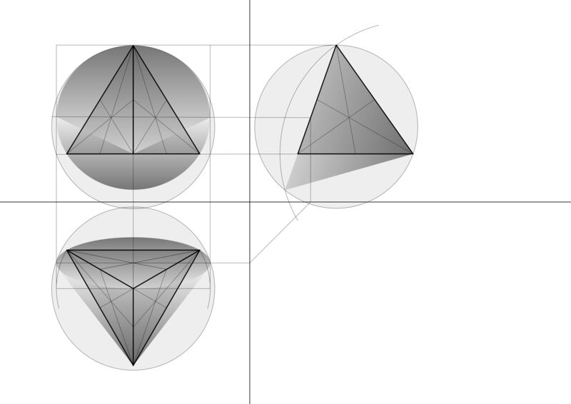 Kegel 2 umhuellt Tetraeder Konstruktion Parallelprojektion
